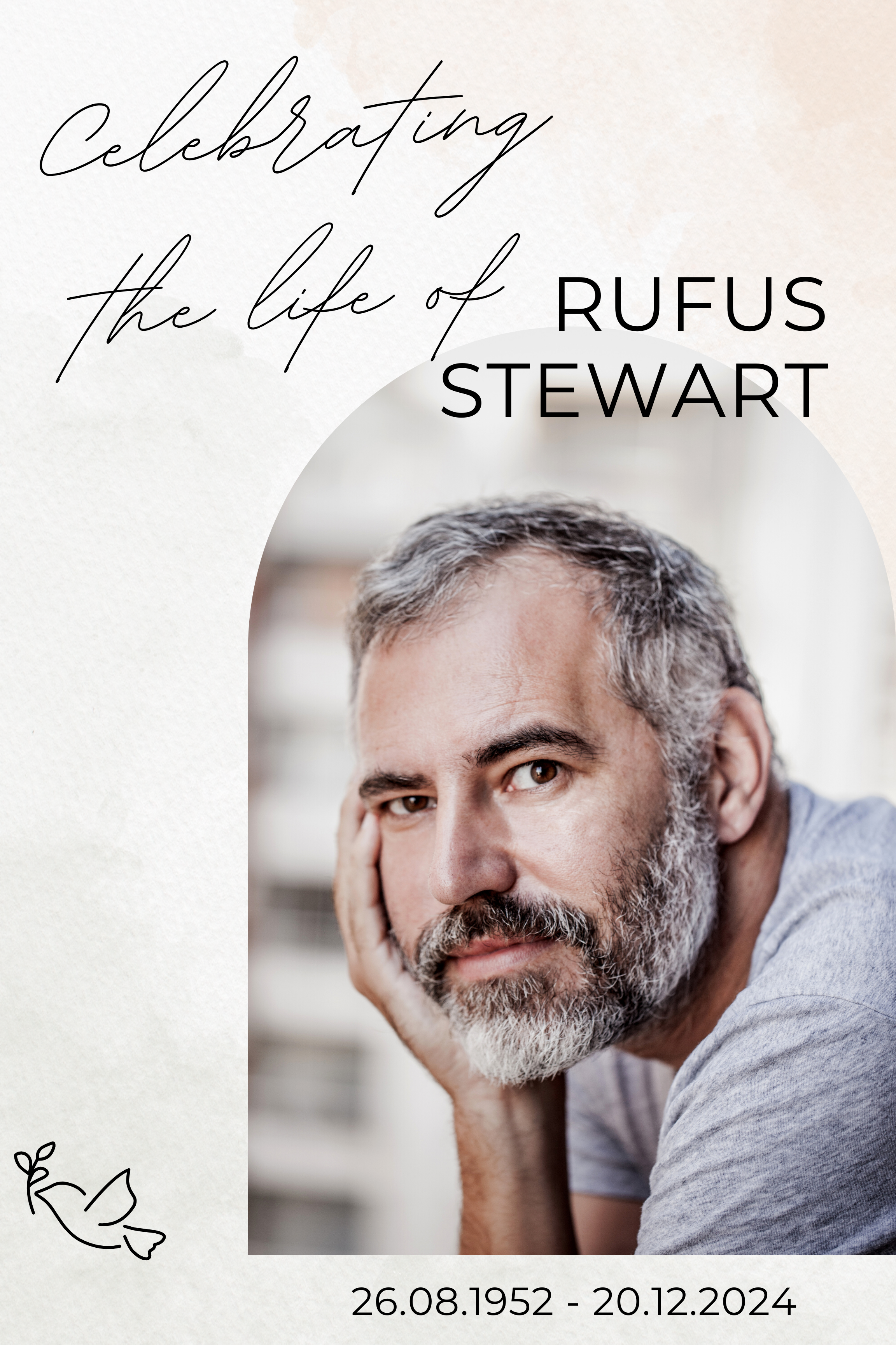 This elegant celebration-of-life poster with a photo features a minimalist layout with soft tones, refined typography, and a centered portrait design that creates a calm and meaningful presence at any service. Designed for families in Oxnard, Ventura, and Camarillo, this poster is perfect for memorial services, celebration-of-life events, and tribute displays where simplicity and elegance matter most.