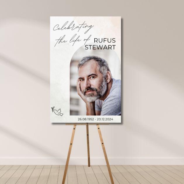 A celebration of life poster provides a simple and elegant tribute that keeps the focus on your loved one. Unlike collage-style boards or directional signage, this design offers a refined, uncluttered presentation that feels modern and timeless.