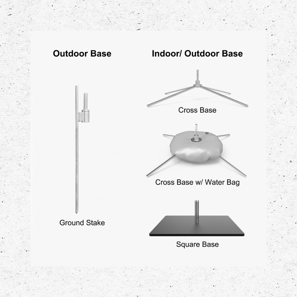 Complete kit includes pole, ground stake or cross base, and carrying bag for easy transport and quick setup