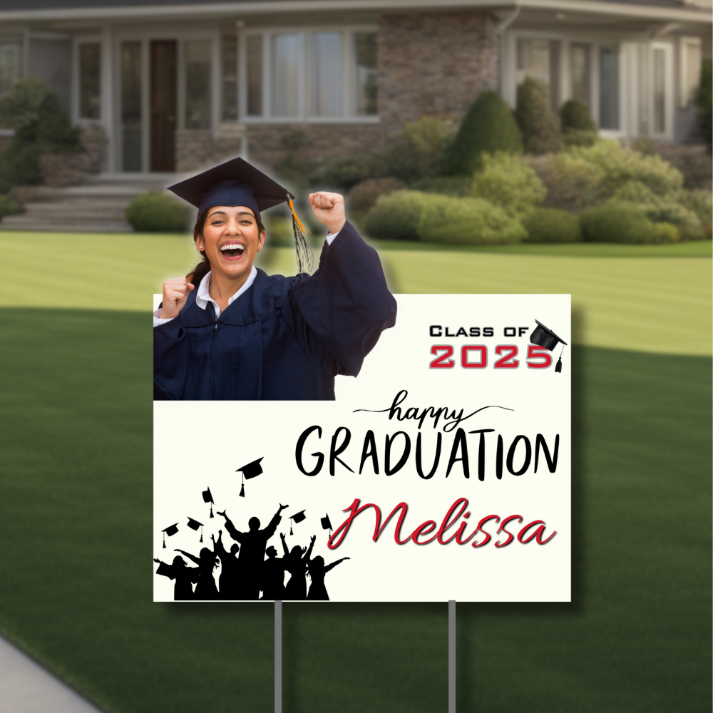 Celebrate your graduate’s big achievement in style with this Personalized Graduation Yard Sign featuring their photo, name, and graduating year! Whether you’re hosting a party or just want to share your pride with the neighborhood, this vibrant lawn sign is the perfect way to stand out.