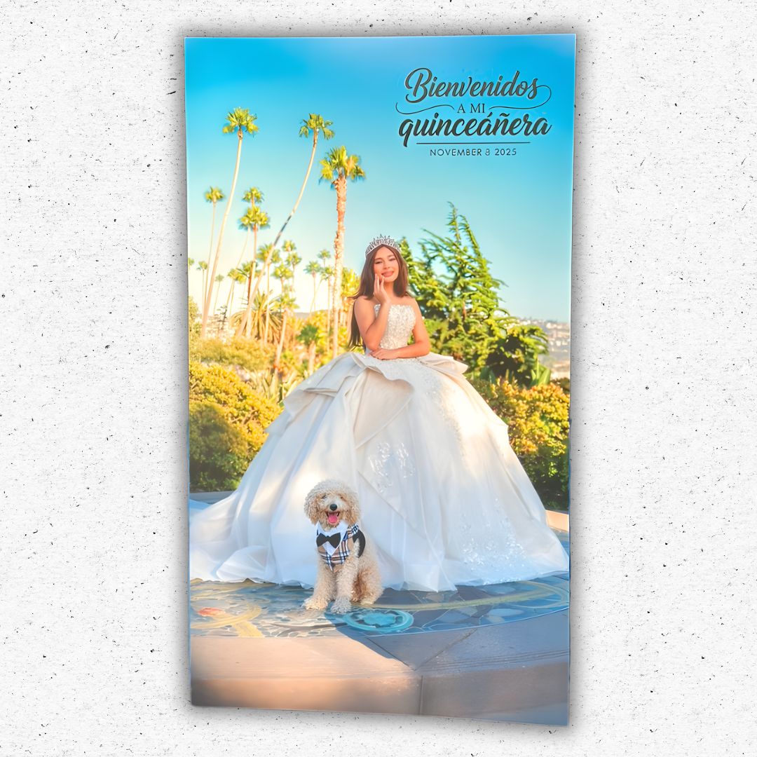 "Specialized backdrops and welcome signs for Quinceañeras and Mitzvahs. Custom-cut displays designed for photos you and your guests will remember and cherish.
