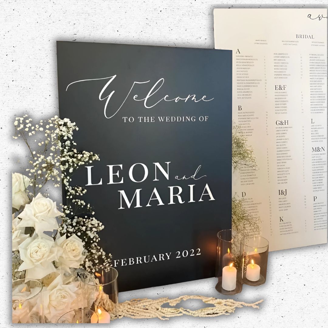 Elegant welcome signs, seating charts, and acrylic displays for your big day. Premium local printing for weddings in Oxnard and Ventura with fast, in-house turnaround.